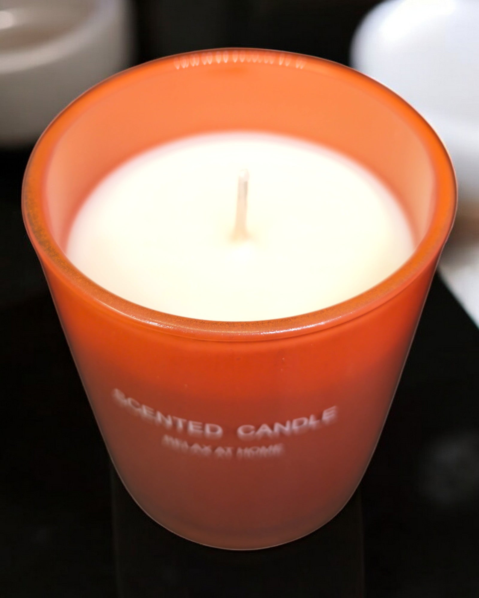Glass Cup Candle – A stunning orange-hued soy wax candle with a lively citrus fragrance. Its joyful aroma and glowing design make it perfect for adding warmth and energy to celebrations or quiet evenings.