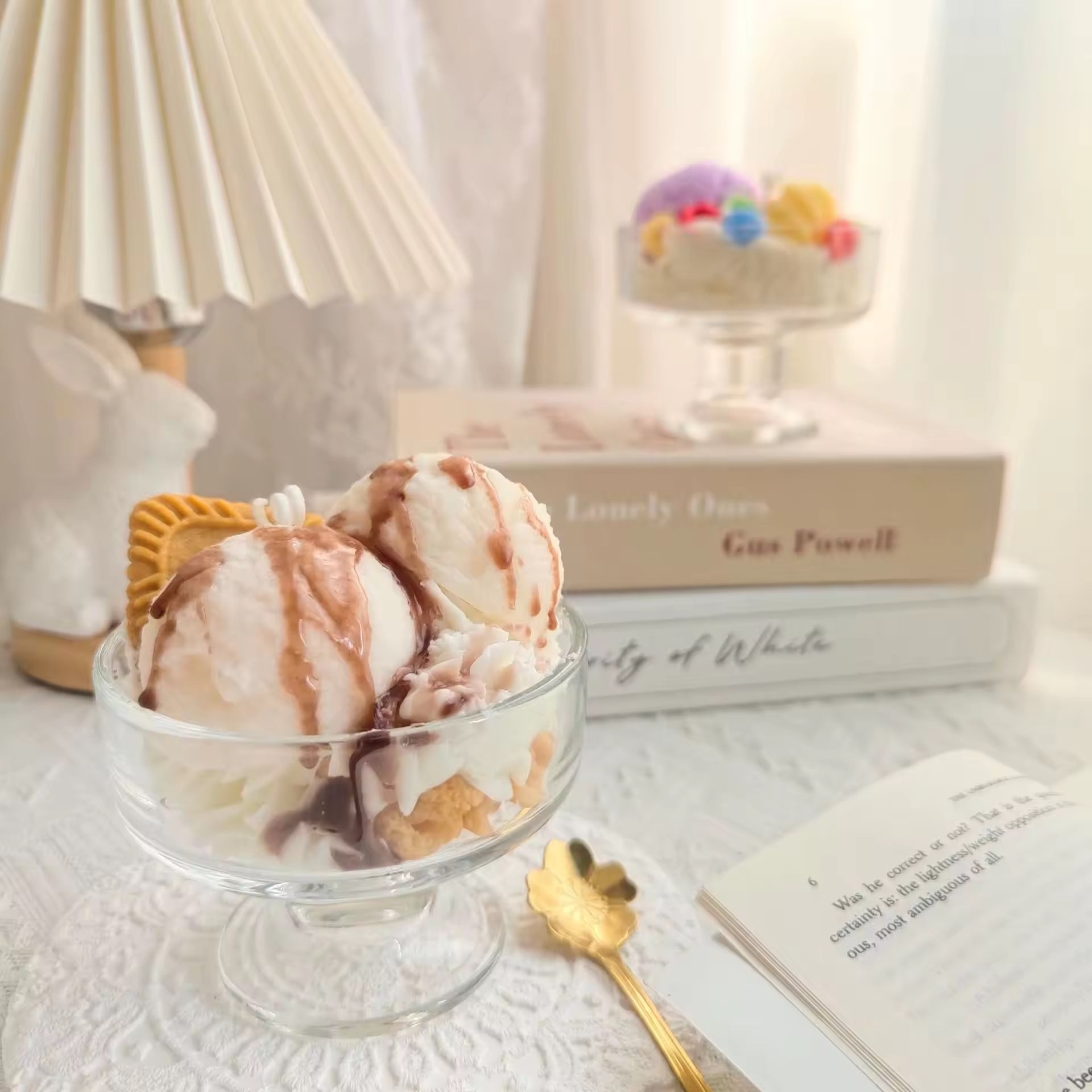 Ice Cream Cup Candle (White Peach Oolong) – A creamy dessert look paired with a refreshing white peach oolong aroma. Elegant and soothing, this piece is perfect for relaxation and everyday indulgence.